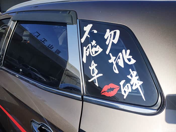 后三角窗加了贴纸,不飙车勿挑衅,哈哈