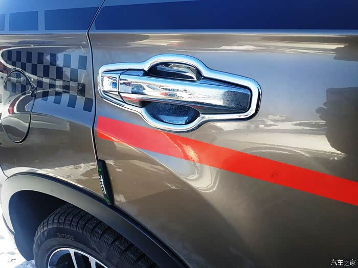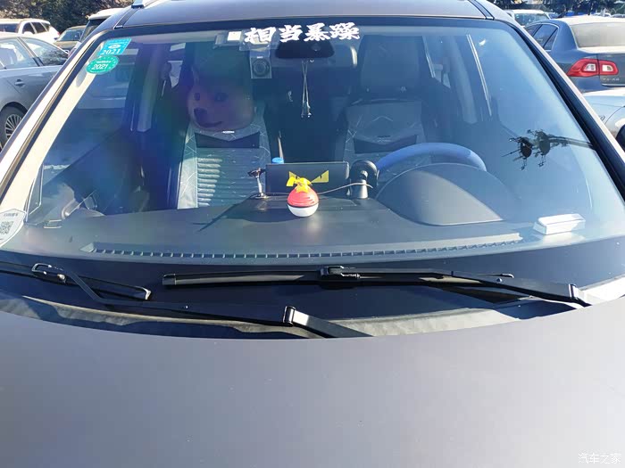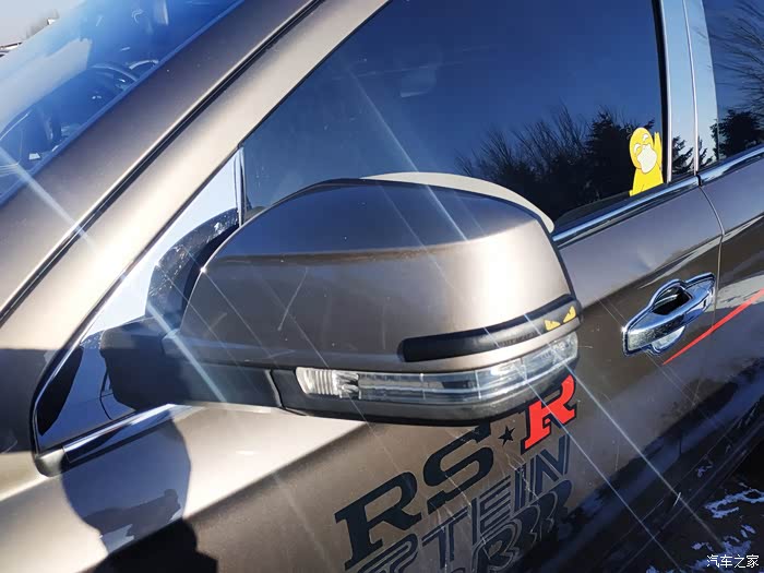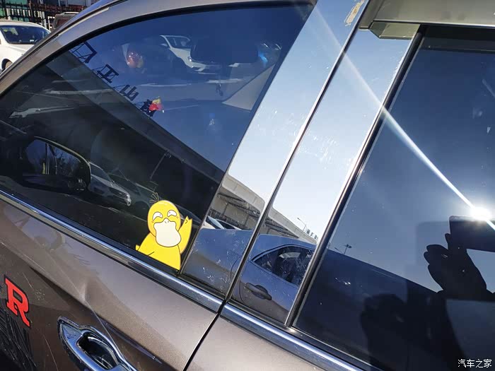 B柱护板换成了镀铬的装饰板,还在前门玻璃上贴了个可爱的小鸭子