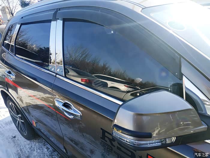 四门玻璃都加装了防雨檐,下雨的时候车里就不闷了