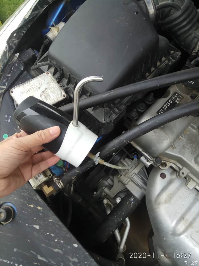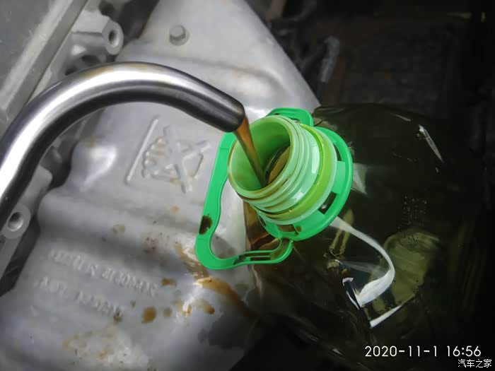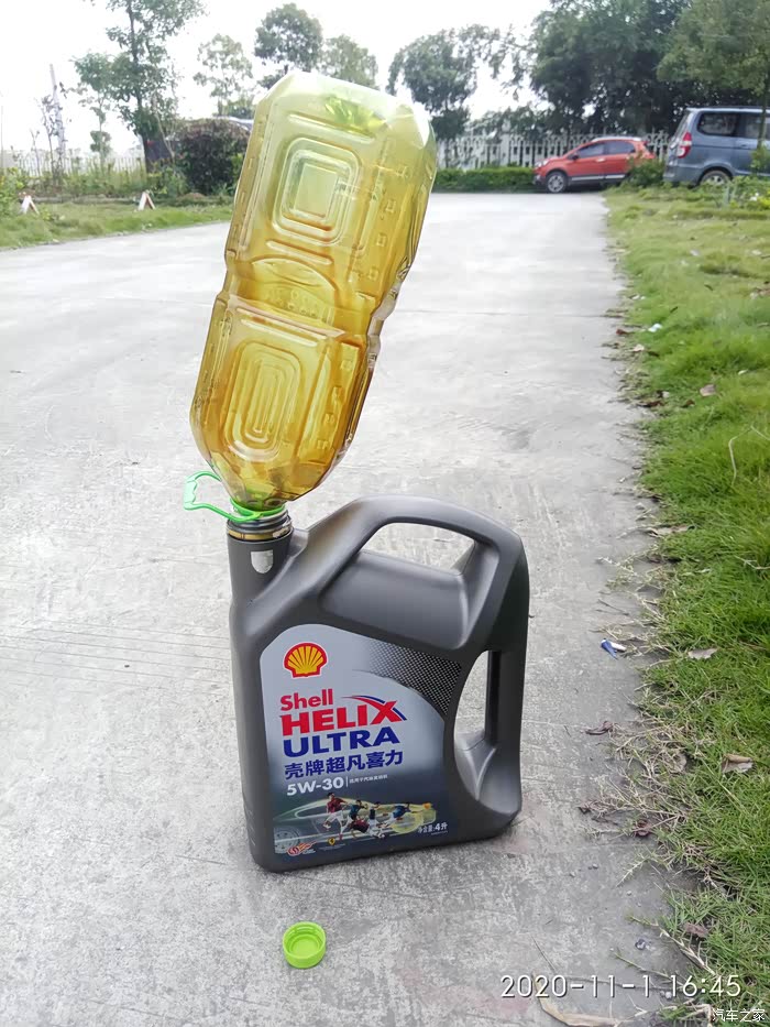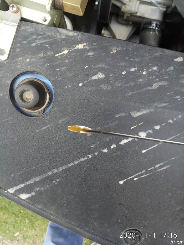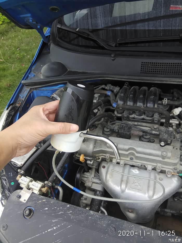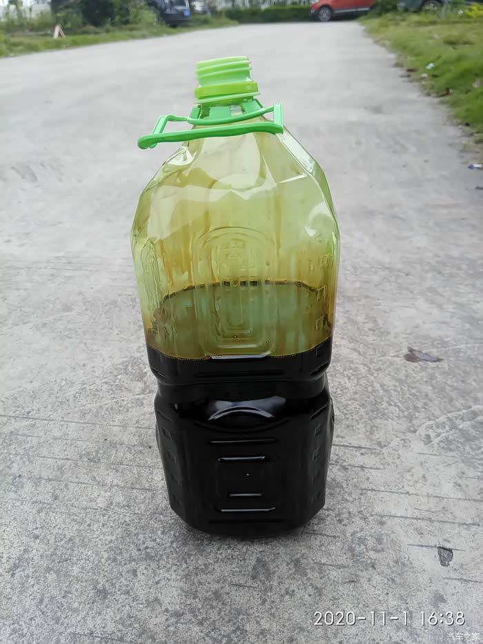 发动机内大概残留有200毫升旧机油,现在冲了大概700毫升准新机油进去。