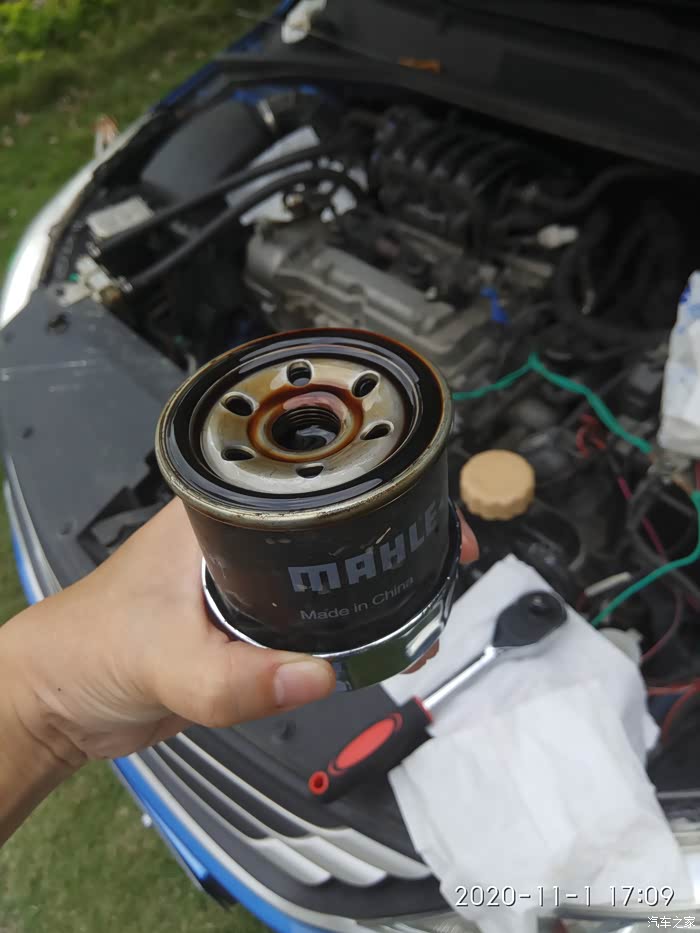 新滤芯安装前倒点机油进去减小气阻、密封圈涂机油密封。(感谢网友提示)