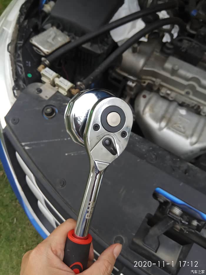 这里操作的空间很小,要用快速扳手才能扭。快速扳手又叫棘轮扳手。