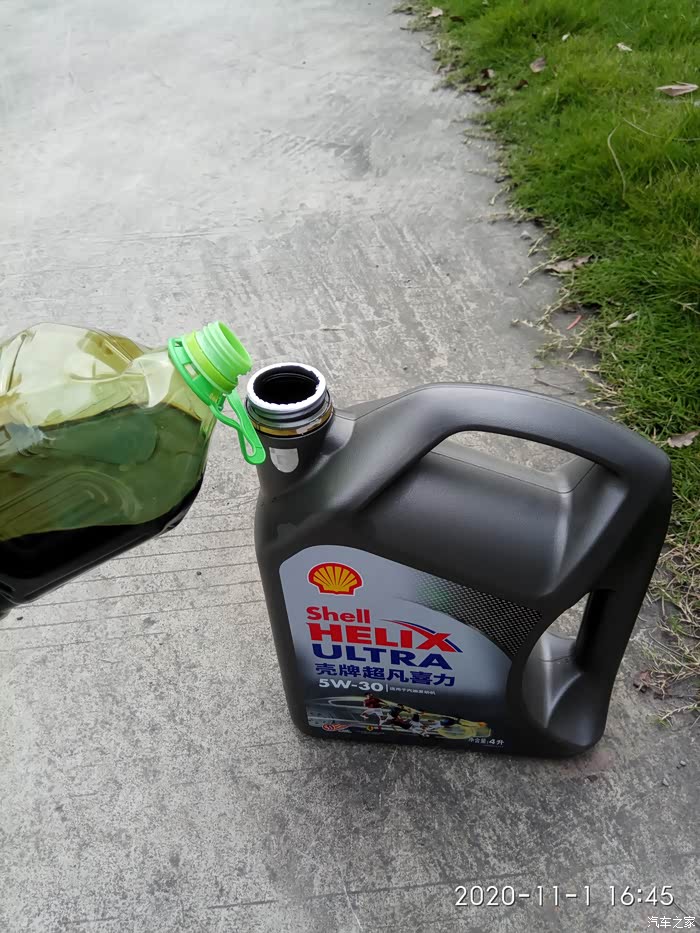 右边(绿色贴纸)的是最近买的,未开封的机油。