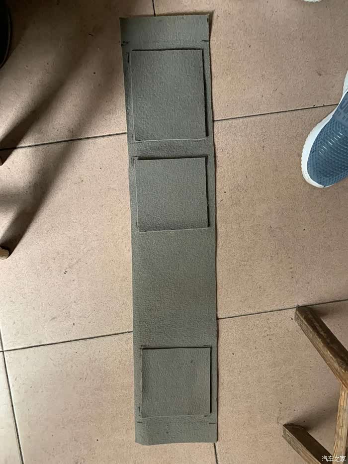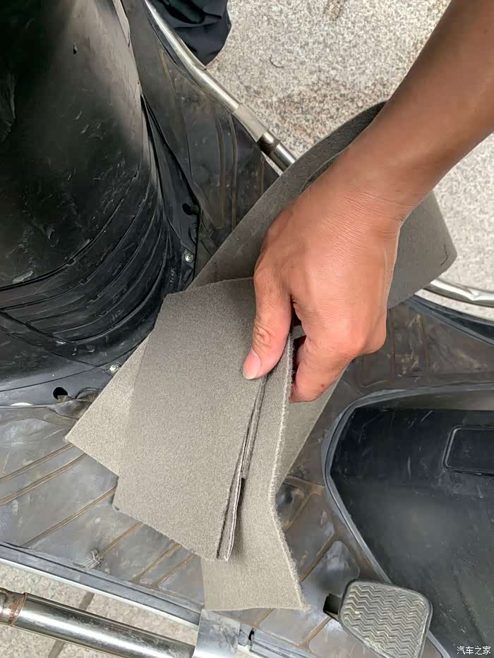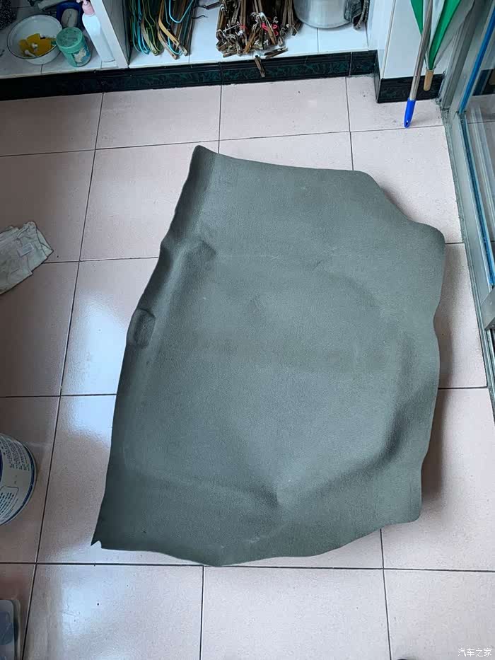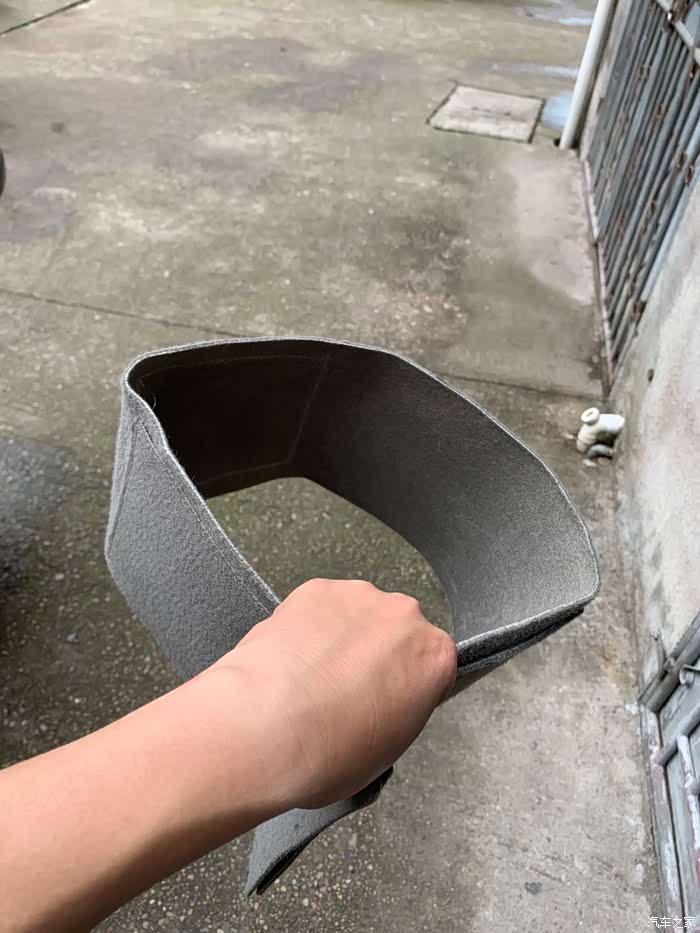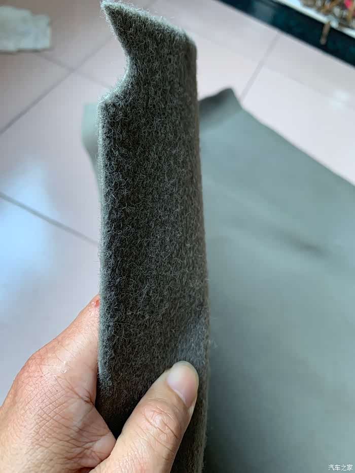 到汽车报废场找了块不知从什么车子上拆下的毛毡衬垫,感觉是驾驶室坐垫下或者就是引擎盖隔热垫,反正材质差不多。