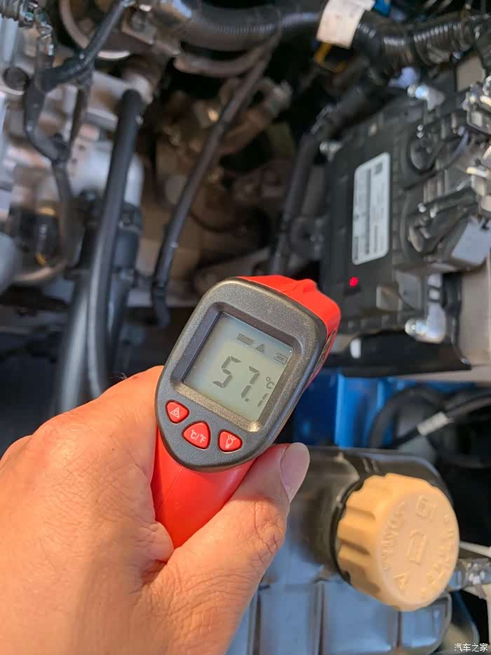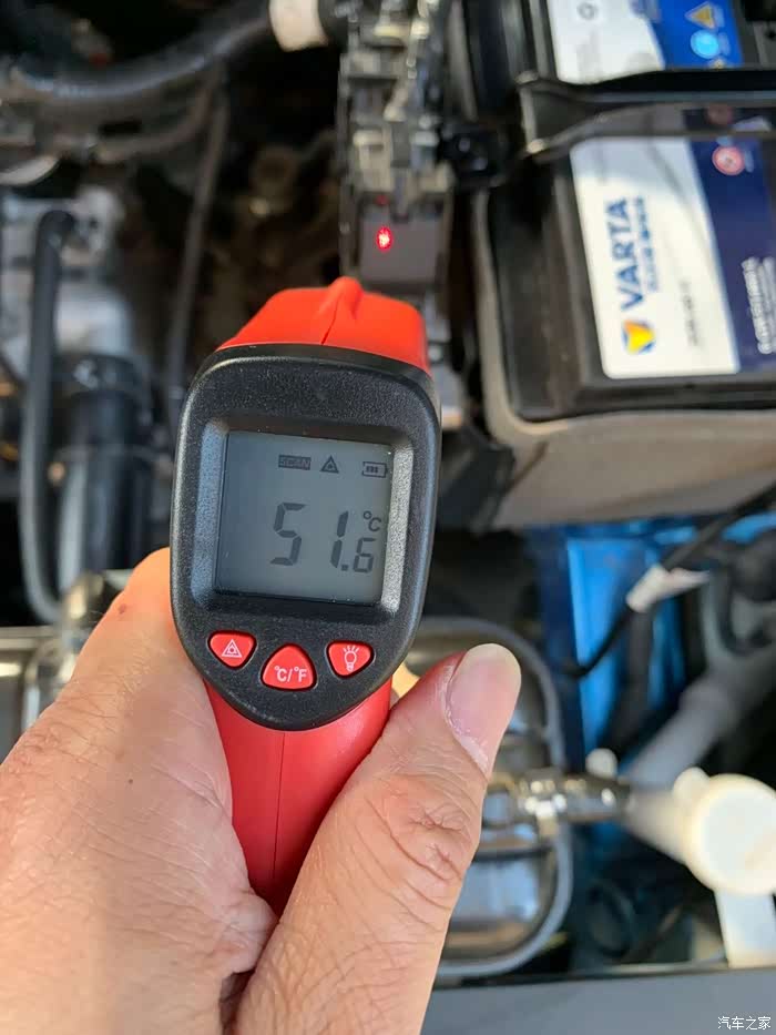 下班回来,用测温枪测蓄电池边上部件的温度。?
