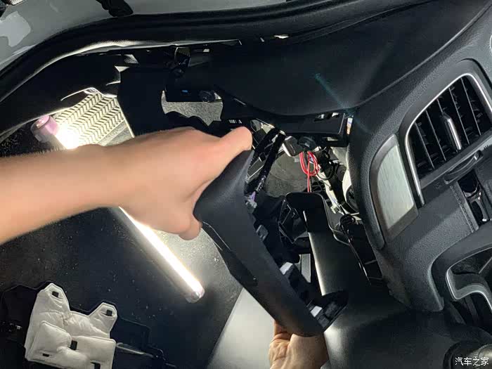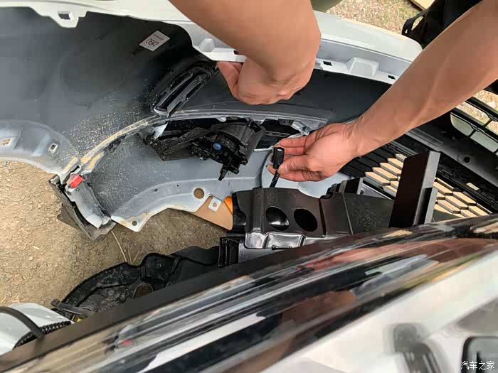 拿出原厂前雷达线束插上插头拉好,多余的线可以用扎带扎一下,前面的4雷达就装好了