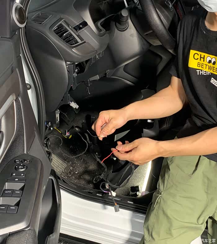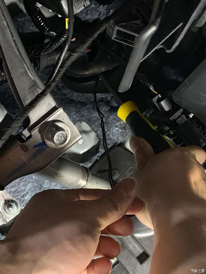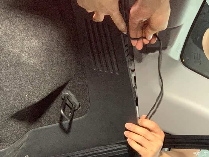 把主驾驶这一边的线沿着门槛布线一直到后面后备箱