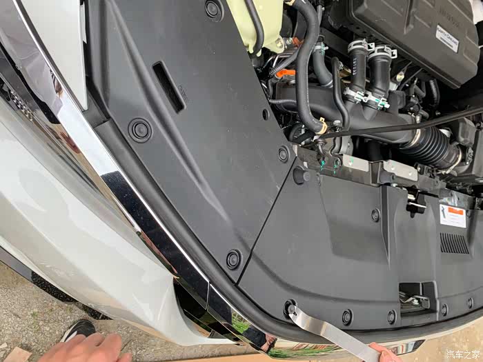 首先打开机盖,用工具翘开卡扣,把上面面板和车底下所有卡扣都翘下来,把面板拿下来放一边