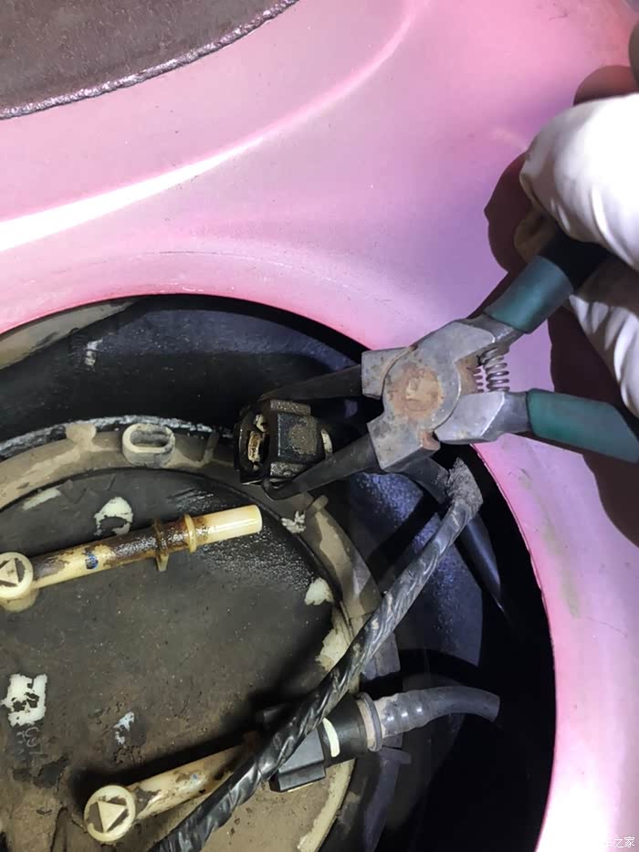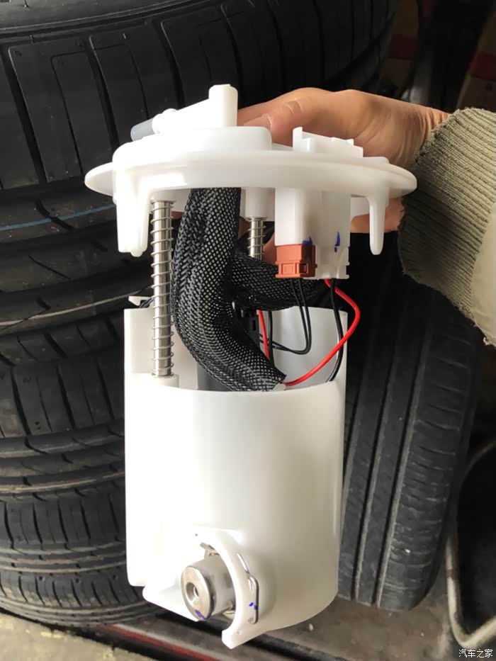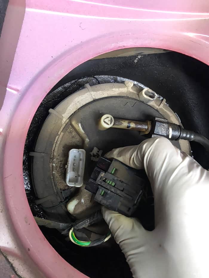 朋友的世嘉车出现很浓的汽油味,打开后座发现是油泵漏油,就网购了一个。