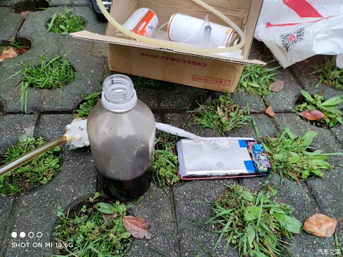 这是泡了十五分钟以后抽出来的药液,黑黢黢的。买的四瓶先喷了两瓶。准备二次清洗的。