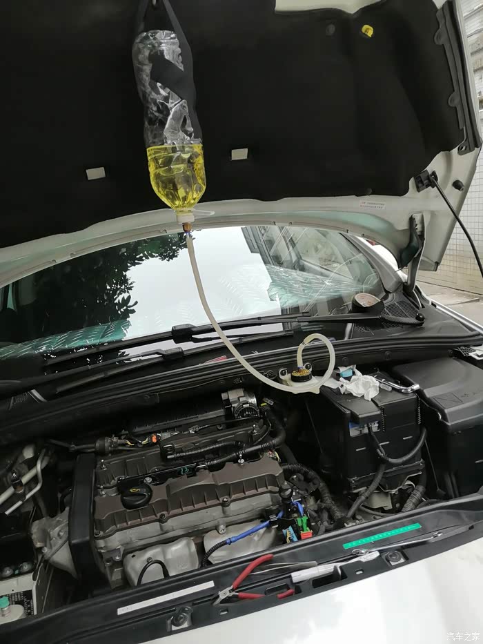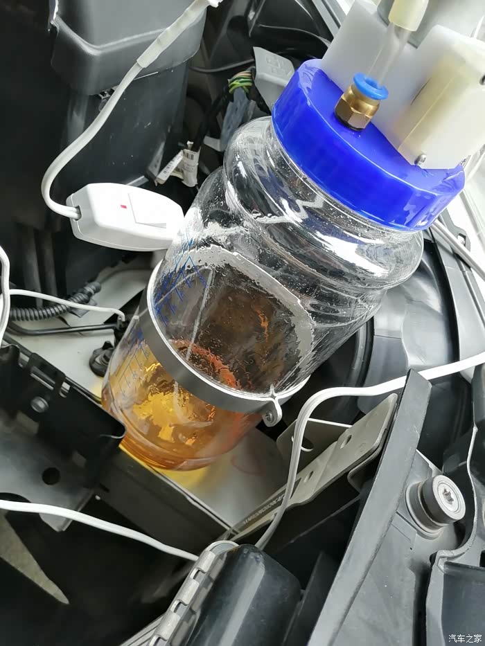顺着那个管子插进去直到大油壶下面,把电瓶底下的油壶抽干净