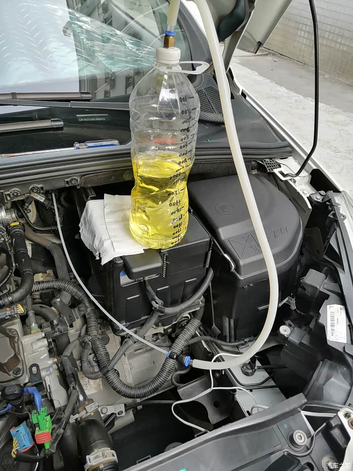 放到差不多了,两升的油量接近用完,再放一下离合器分泵的油就行了,自动挡的话就不需要这一步骤。