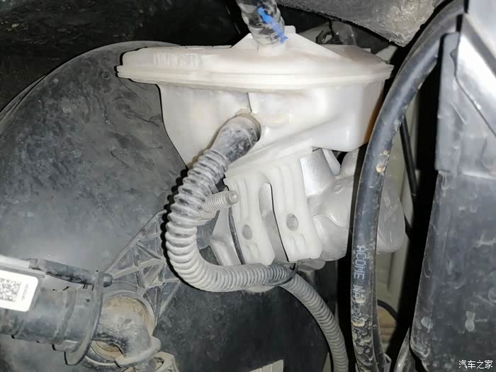 然后把油壶两颗螺丝松开,放斜坡一点里面的油彻底抽干净就把油壶子拔下来,然后用一根4 规格的吸管插进油管里面直到底下的大油壶,把大油壶抽干净,然后重新注入新的刹车油