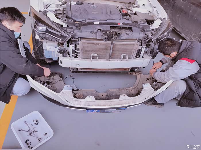 车子先开到钣金车间,换保险杠等零件