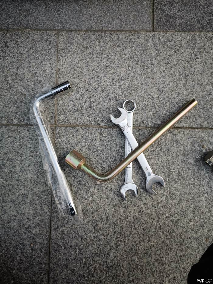 先拆轮胎,经过别人提醒才想起来,随车工具包里就有拆卸轮胎套筒
