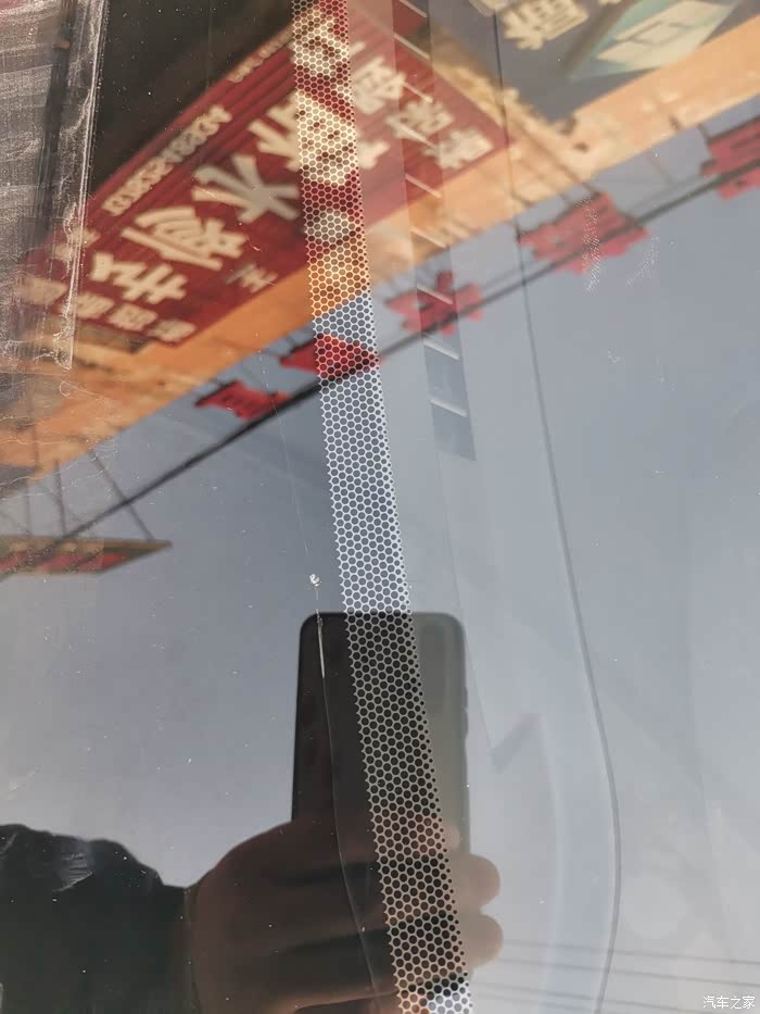 黑色部分可以看到裂缝,前挡风玻璃是双层夹胶玻璃,我的是里面裂了,有可能是石子崩到前挡风玻璃,外面没有裂,反正是裂了,看着也太不舒服了,就换了吧