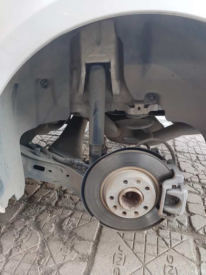 都说法系车底盘调教功夫了得。我这车后轮是非独立悬挂。这次补胎,卸掉轮胎后,清晰可见,这是后轮悬挂结构全貌。