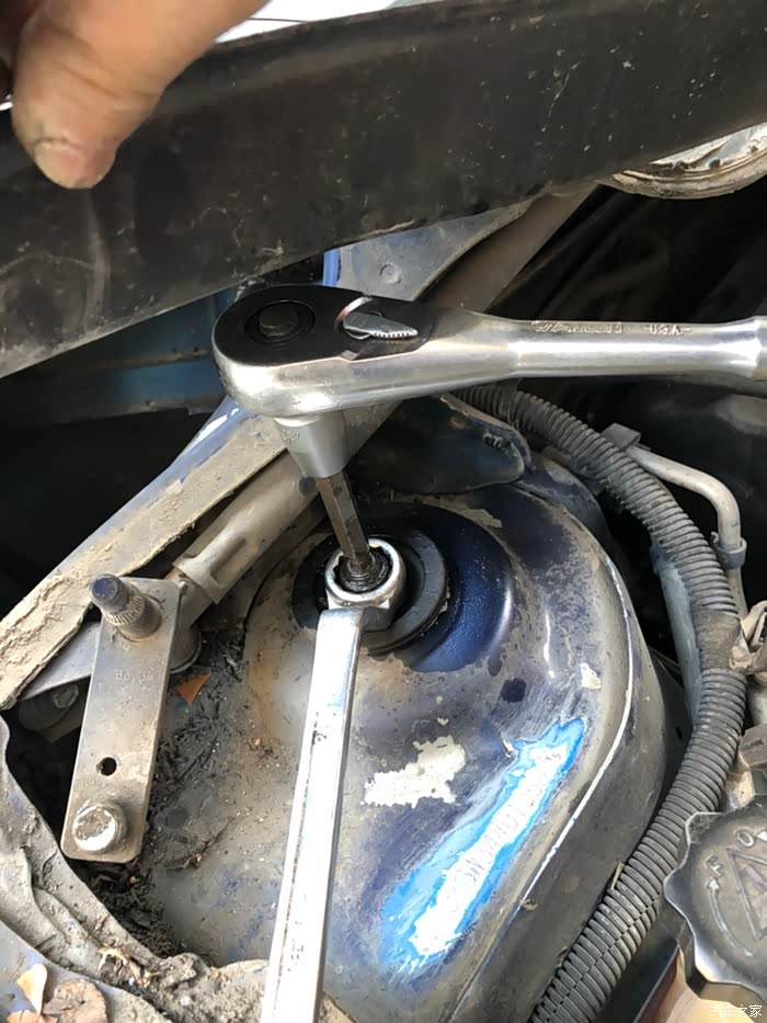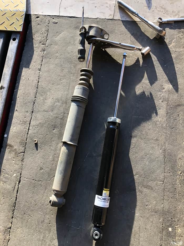 更换前减震器时,要压缩弹簧,注意安全。忙活了半天,终于完工。路试确实很好。