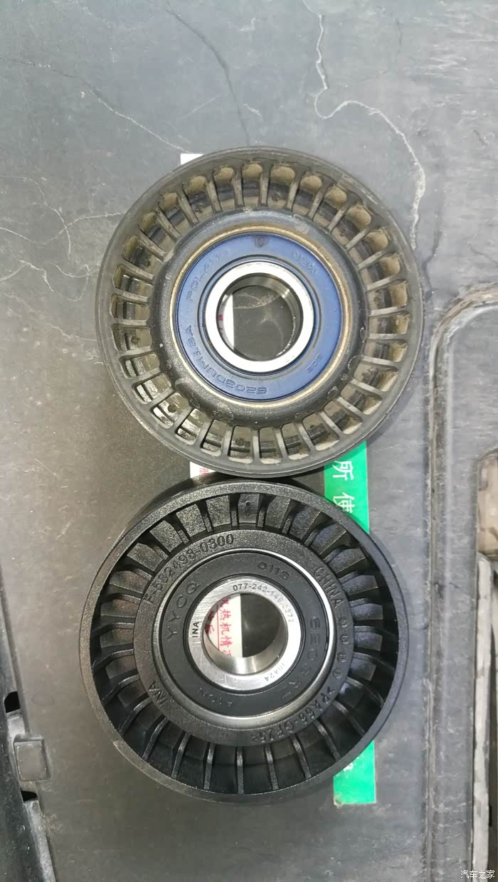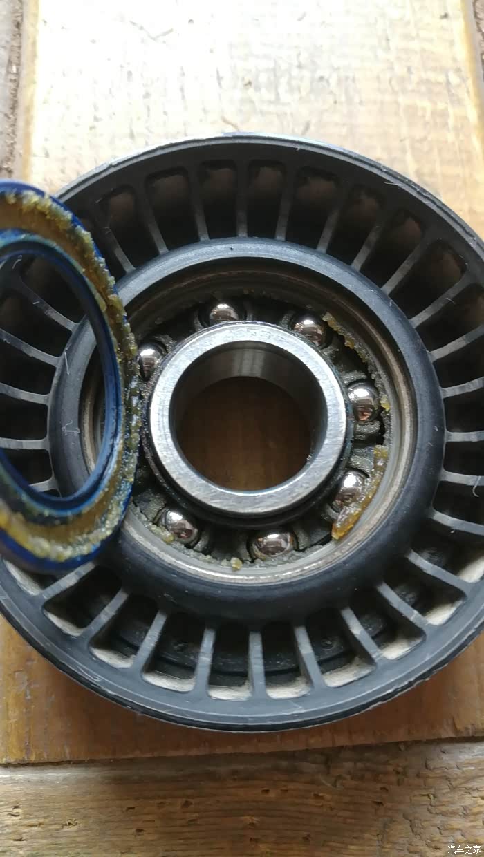 旧的涨紧轮轴承拆开,里面都干了,不过洗干净也有轻微异响,应该毛病就在这里。好了,正文完,谢谢观赏,祝坛里各位408真车主家庭幸福美满,拿工资的不拿工资的车托车黑。