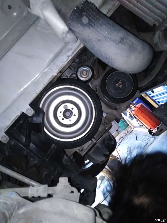 换附件皮带装的时候用扳手逆时针扳涨紧轮皮带就松了,这个扳手用梅花13的,我以前自己在网上55元买了根附件皮花20块钱手工费带换上了,有扳手自己就可以,扳手几块钱一个