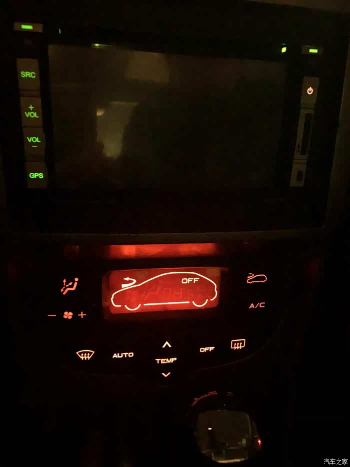 这是晚上拍的图片。?这车子从2013年到我手上时,空调控制面板背景灯就一直不亮,当时我以为本来就是这样呢