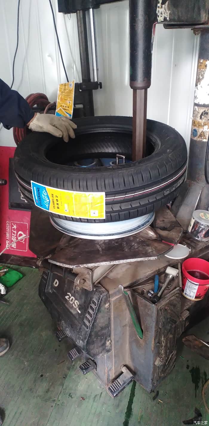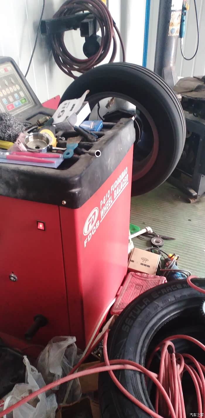 左前轮换好之后在作动平衡时候拍的照片