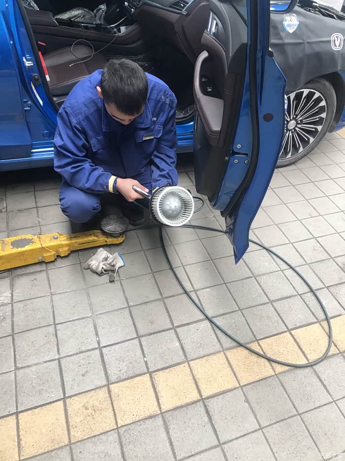 拆开空调系统,吹干净鼓风机