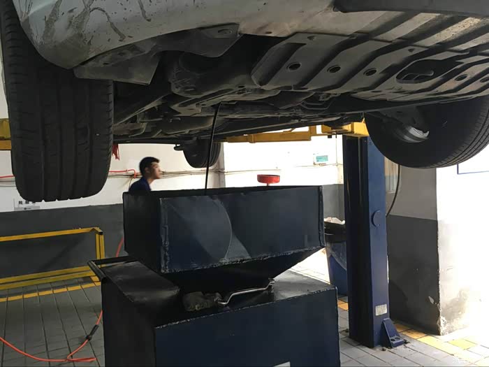 很快机油放干净后,逸动慢慢降了下