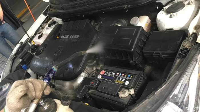 最后就是对逸动整个发动机舱进行清洗