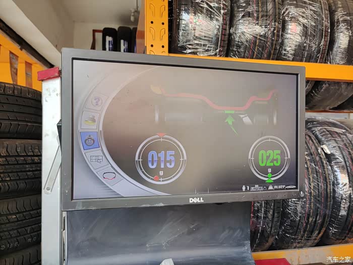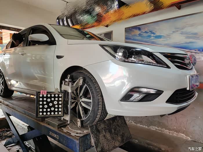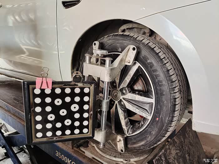 师傅开着更换轮胎后的逸动出去跑了一圈回来,说要做一下定位,就是上这个架子