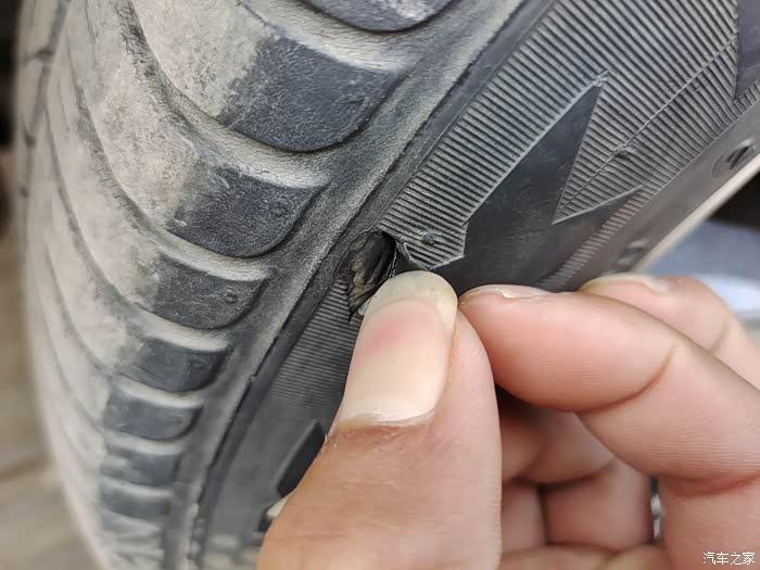 看看这伤口,就是春节回老家不小心擦挂的,虽然这个伤口很小,但在轮胎最薄的地方,加上平时我经常跑高速,还是决定更换了