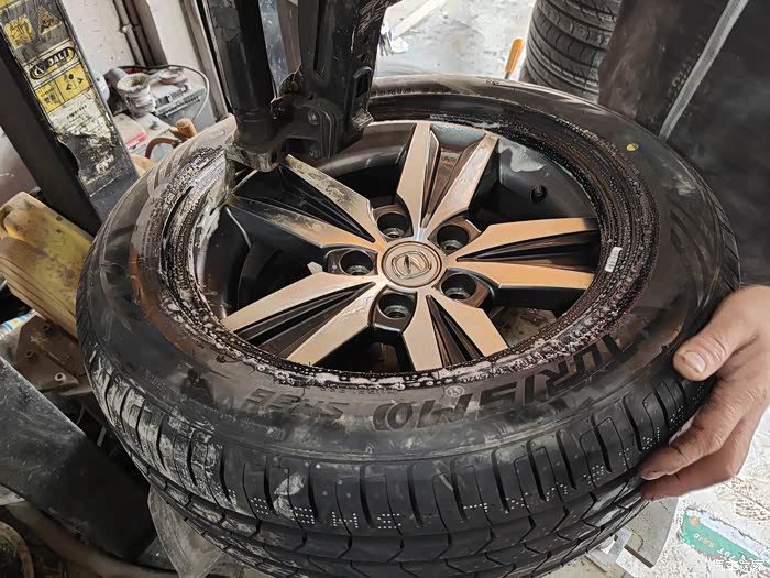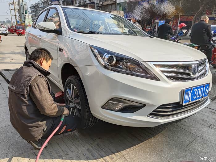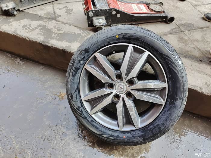 逸动在两个多小时的轮胎更换中终于结束了,虽然原车轮胎质量很好,在五年时间并没有磨损什么,但擦挂后考虑到驾驶的安全,还是决定把前两个轮胎更换了。