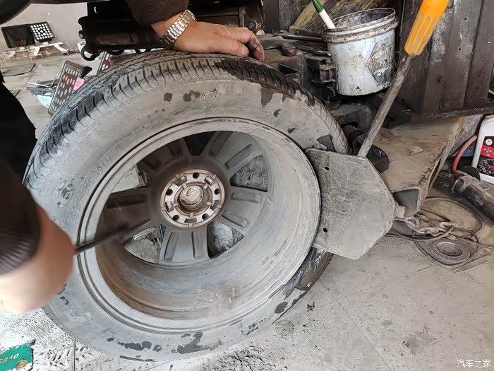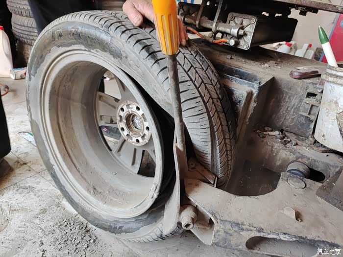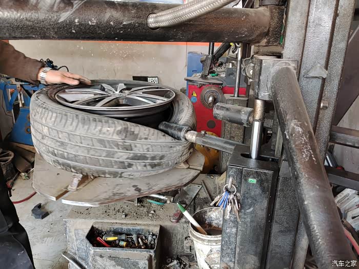 师傅开始对我的逸动轮胎和轮毂进行分离了