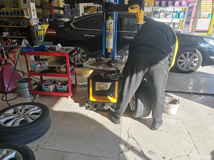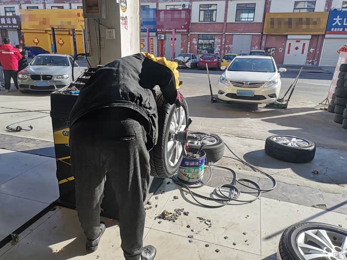 给师傅对照一下网购的轮胎以及订单号之后师傅开始操作起来。