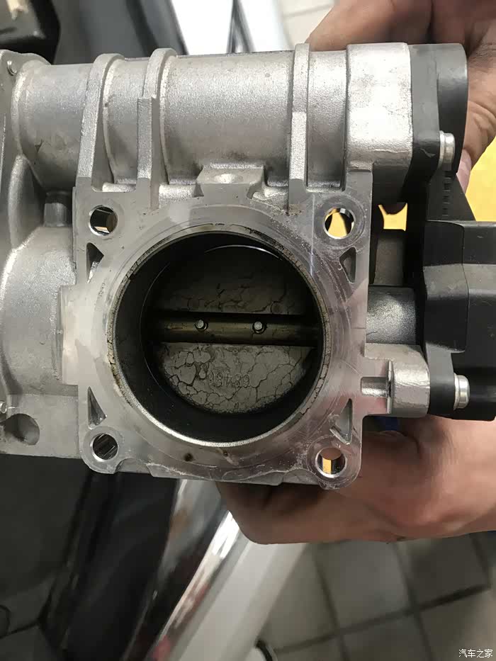 拆下来的节气门,里面黑黑的,是挺脏的,怪不得动力下降了。