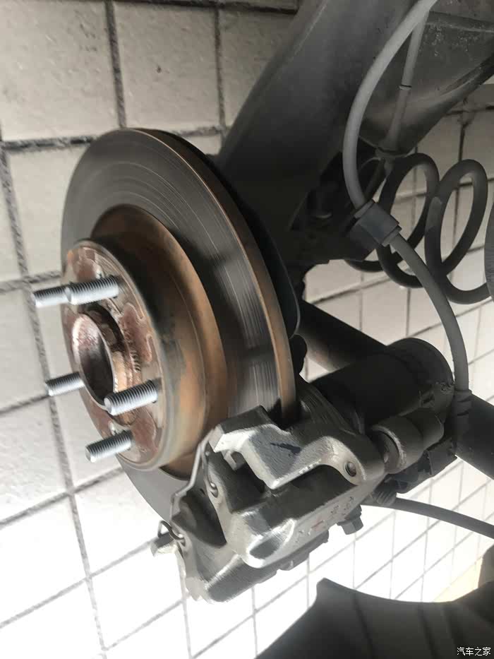 顺便拆下来做个定位,刹车盘因为是铁的,有点生锈。