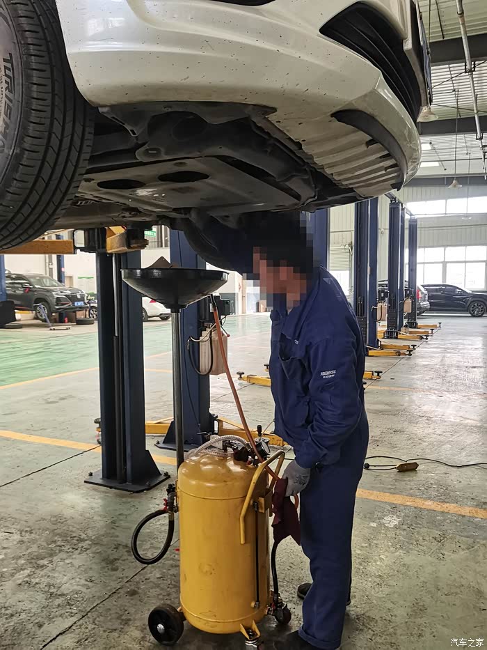 维修师傅正在把旧机油给放出来