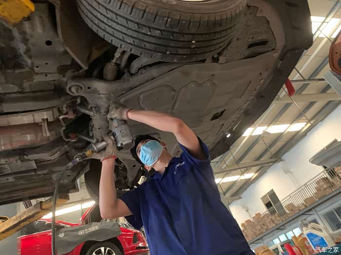 师傅觉得还是把护板拆下来更好操作和检查一下