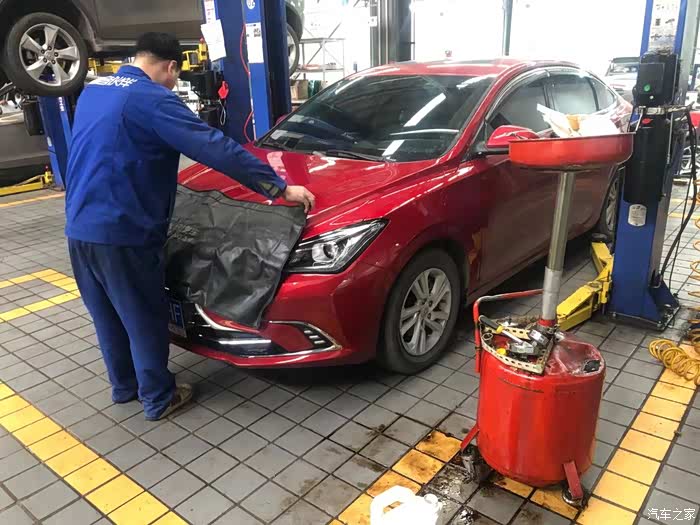 马上就开始保养了,就在外面看着,等工作人员把车子开进去就可以了