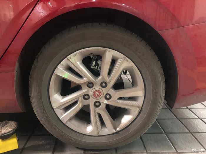 16寸的轮毂,虽说不大,但是很协调,轮毂造型也犀利