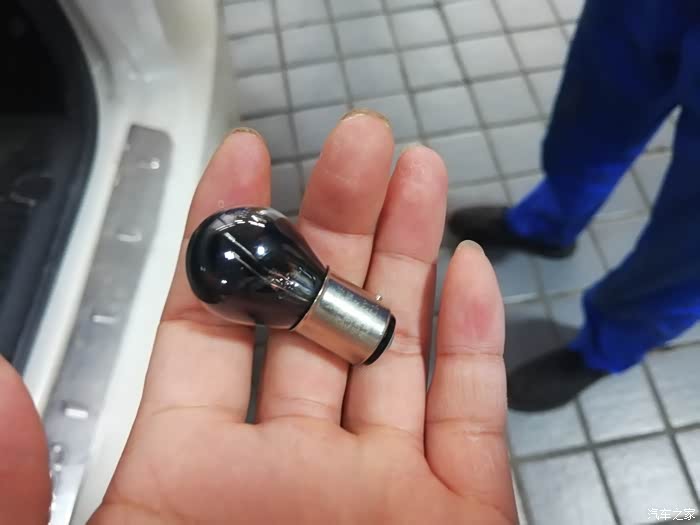 到达4S店后的情况,刹车时只有一边的灯在亮,而另一侧的灯却已经坏掉了。