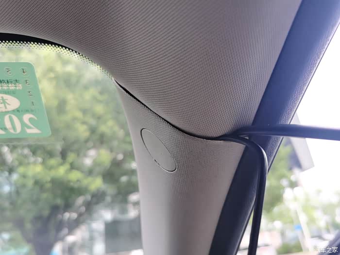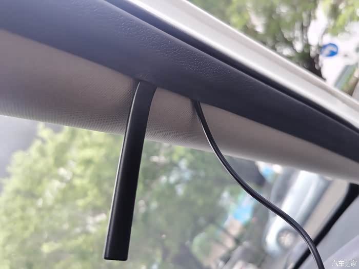 先从后视镜位置开始走线,沿着挡风玻璃上部边缘,把线塞进内饰缝隙