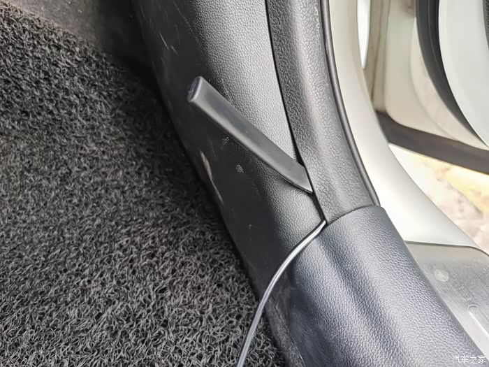 到了这里就开始有点难度了,要小心翼翼,用撬棒把线塞进内饰板缝隙里面