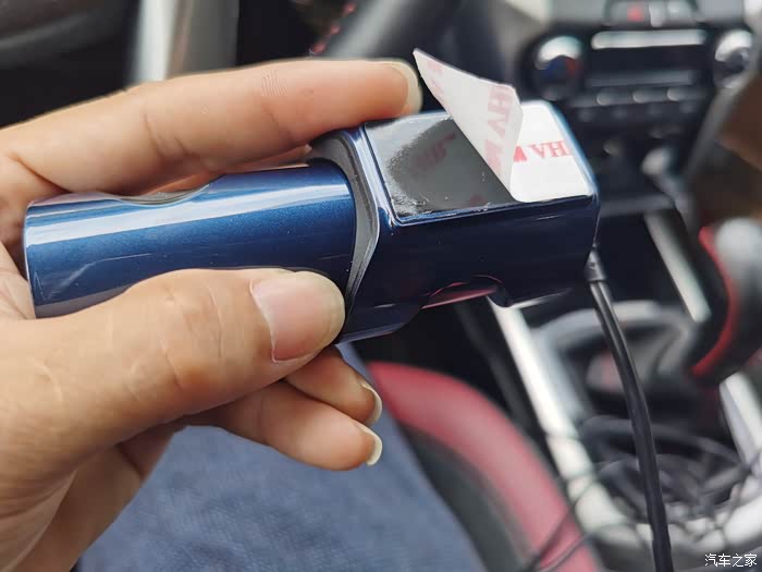 确定好位置之后,把行车记录仪固定支架的3M双面胶撕开保护膜
