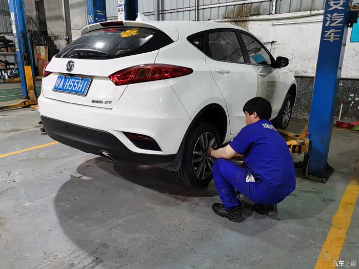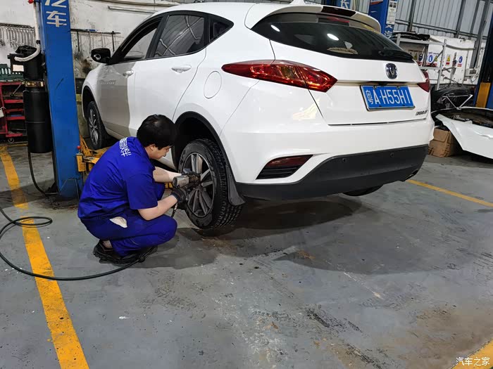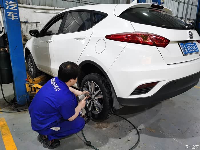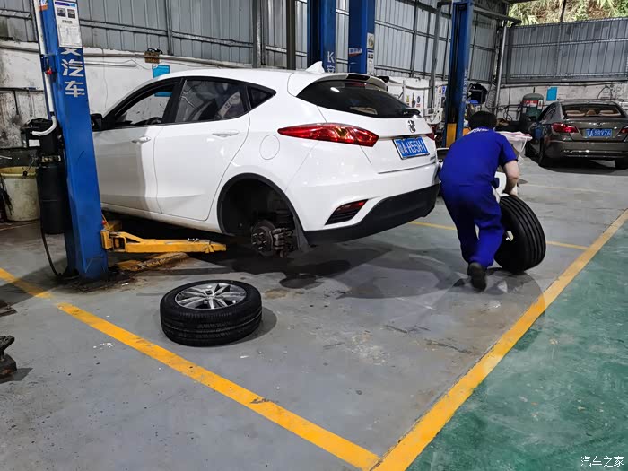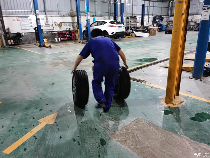 我要求先换两个后轮,师傅说车尾向前,好换一点