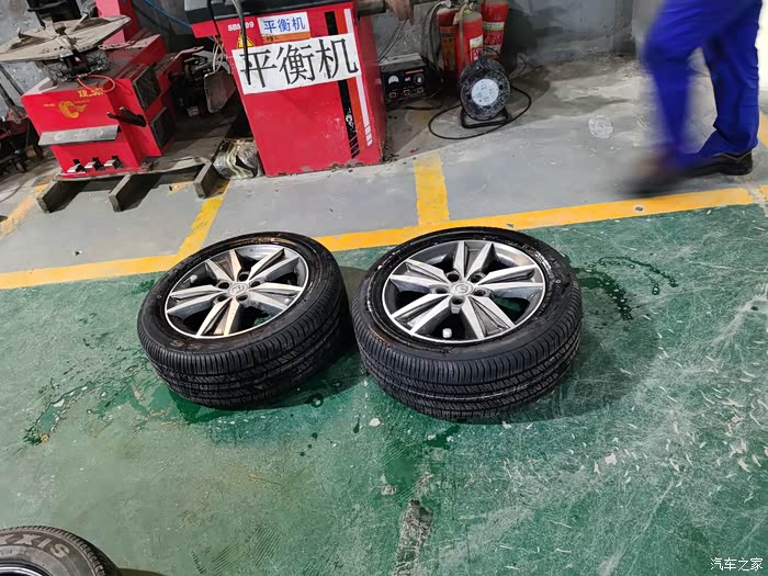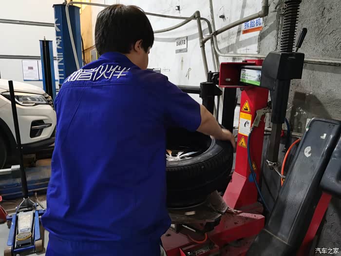 师傅一个人就换好了两条胎,技术不错