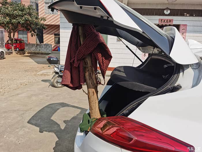 老家里啥不多,就是木头多,找了一根木头顶住尾门