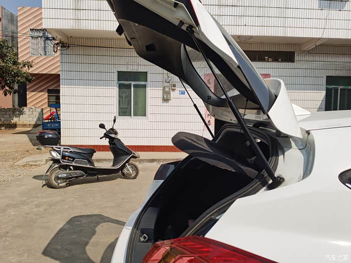 需要手动抬升至这个高度,尾门才不至于掉下来,尾门重量也不轻,抬升也费劲,女士根本抬不起来