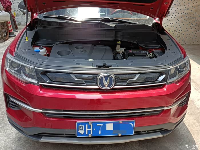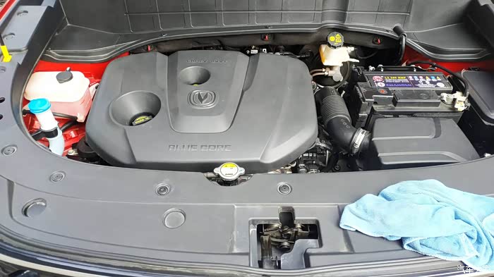 首先把引擎盖打开,引擎盖挺厚重的,长安的用料质量还是相当不错
