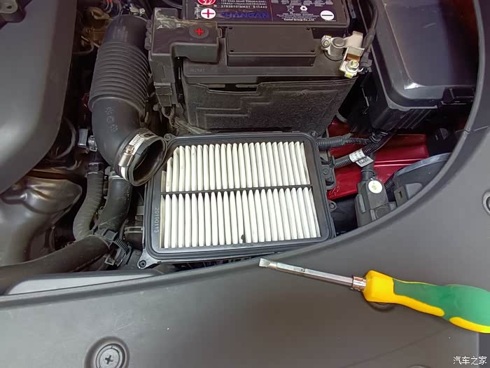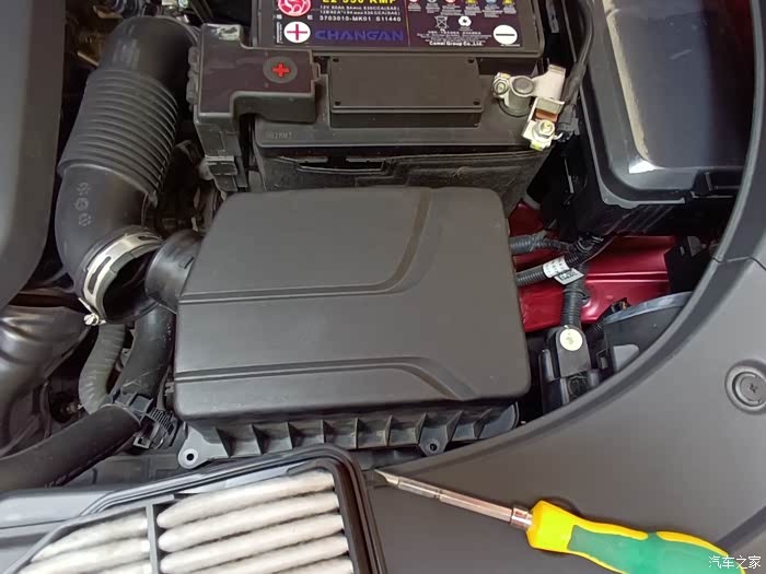 这就是等待更换空气滤芯的CS35plus准备好7mm套筒,一字螺丝刀,有质量保证的空气滤芯,我买的是长安原厂空气滤芯,还有吸尘器